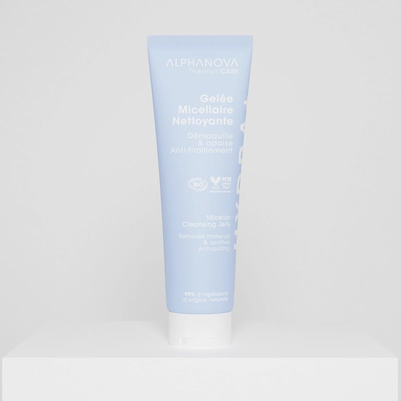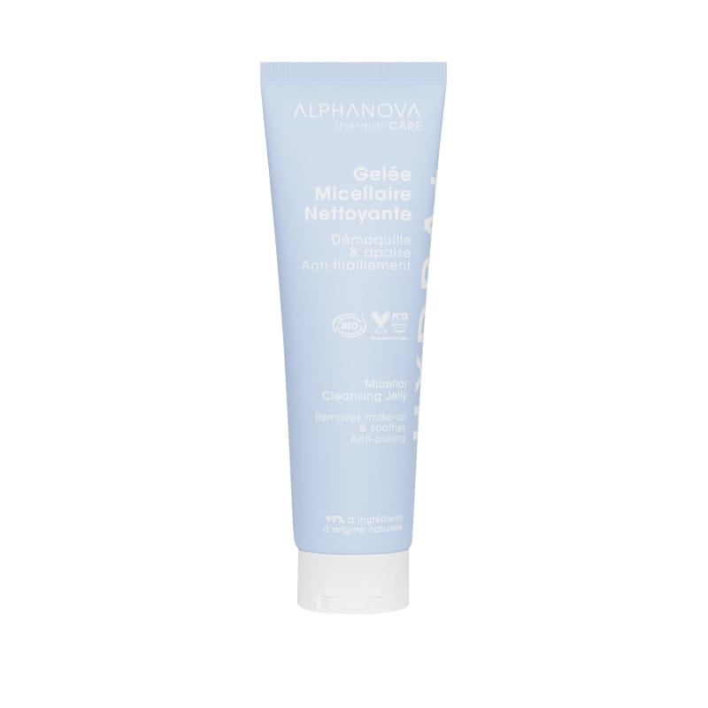 La gelée micellaire nettoyante Alphanova Thermal Care démaquille et apaise la peau grâce à sa texture fondante qui forme un film protecteur. Sa formule thermale associe le Bleuet et l’Aloe Vera à l’acide hyaluronique hydratant. Ses micelles éliminent les impuretés accumulées (pollution, maquillage…) et l’excès de sébum sans agresser la peau ni la dessécher. Ces actifs complémentaires réparent et apaisent les peaux sujettes aux irritations et tiraillements. Le teint est éclatant, la peau est nette, tonifiée et réconfortée.