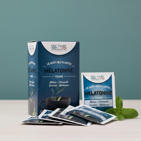 La Tisane Mélatonine d’Eric Favre est un complément alimentaire sous forme d’infusion, spécialement conçu pour accompagner les personnes souffrant de troubles du sommeil ou de difficultés d’endormissement.