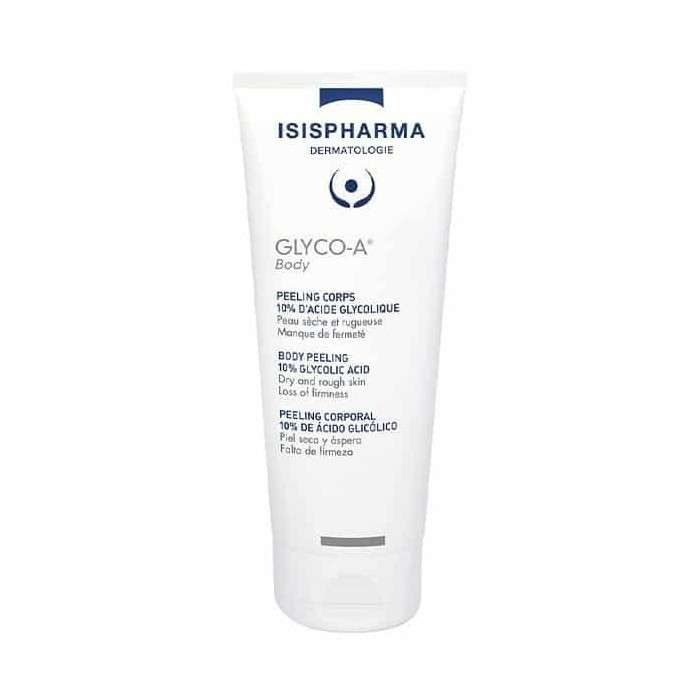 Isispharma Glyco-A Peeling Corps 200ml adoucit, hydrate en profondeur et tonifie la peau. Sa concentration optimale de 10% en acide glycolique en fait l’alliée idéale pour améliorer visiblement la texture de la peau : aide à éliminer les rugosités des peaux sèches et tonifie les peaux qui manquent de fermeté cutanée. Le pH de GLYCO-A SOFT Peeling est de 3,8 pour un parfait équilibre entre tolérance de la peau et efficacité du soin. Convient pour les peaux sèches et rugueuses, en manque de fermeté.