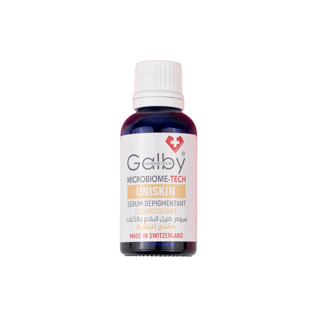 Sérum Dépigmentant Eclaircissant UNISKIN de Galby Dermatech avec sa texture légère et soyeuse pour tout type de peau , combine la technologie du microbiome avec des actifs dépigmentants pour une action complète. Il unifie le teint pour révéler une peau visiblement plus claire et lumineuse. Adoptez une routine de soin qui optimise votre éclat naturel tout en protégeant votre peau.