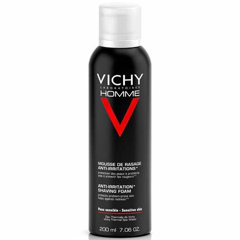 Les peaux sensibles étant très souvent sujettes aux irritations d’après-rasage, il est préférable d’utiliser une mousse atténuant les effets du passage de la lame. La mousse à raser anti-irritations de Vichy répond à ce besoin grâce aux effets adoucissants de sa composition.